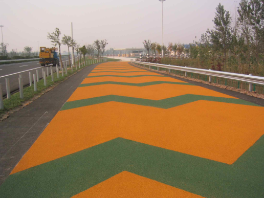 針對(duì)目前使用的彩色防滑路面材料存在的色彩易脫落、防滑薄層易開裂等問(wèn)題,選擇彩色陶瓷顆粒材料作為骨料和選擇性能優(yōu)良的粘接劑施工彩色防滑路面,優(yōu)點(diǎn)是防滑耐磨,耐候性好,不易褪色,顏色鮮艷具有警示作用。